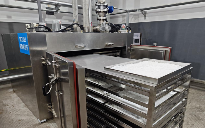 此次共投入810公斤银板,经过溶银、除杂、中和、结晶、烘干等一系列流程后,一盘盘雪白的、亮晶晶的成品展现在大家眼前。