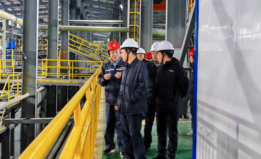 杨洪峰一行实地走访了宏源公司生产调度控制室、生产车间及项目现场,详细了解钒生产工艺、产品精深加工延伸、产业链发展规划、环保设施运行及安全生产管理等情况。在听取宏源公司负责人关于钒产业链项目的发展规划及有关问题的汇报后,杨洪峰指出,海利集团作为湖南省的钒产业链链主企业,在推进智能化、数字化提质升级及资源综合利用方面成绩显著,下一步应加速推进下游高科技产品研发进程,重点聚焦于废渣循环利用领域,通过技术创新与产业协同实现资源循环利用,提高企业经济效益,推动环境保护可持续发展。他强调,州县各级各部门要进一步优化营商环境,落实惠企政策,为企业发展创造良好条件。他鼓励宏源公司抢抓新能源产业发展机遇,加强与科研机构合作,推动全钒液流电池等前沿技术研发应用,努力打造全省钒产业标杆企业,为湘西州高质量发展注入新动能。