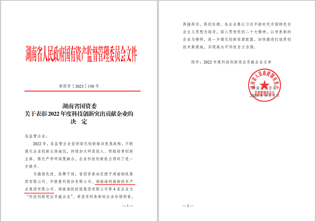 日,省国资委下发《关于表彰2022年度科技创新突出贡献企业的决定》,海利集团作为四家省属国企之一榜上有名