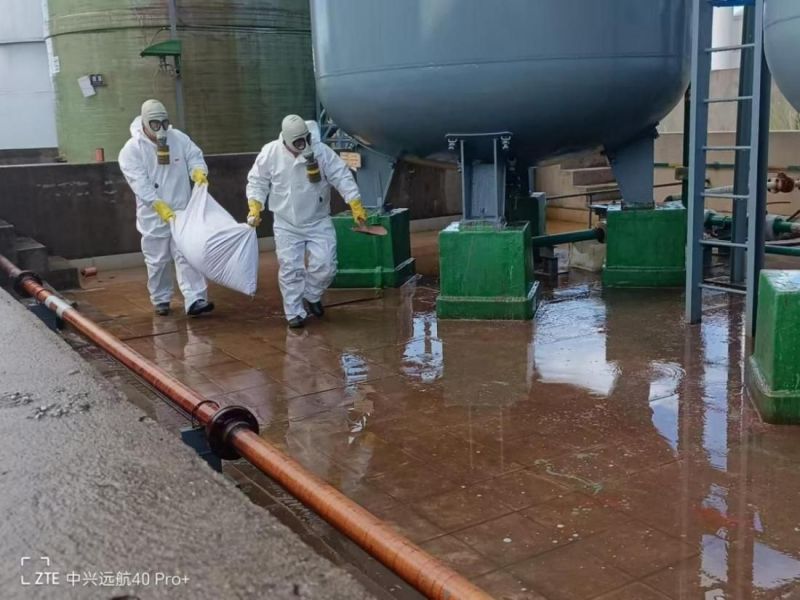 为提高员工安全防范意识,规范生产应急救援管理,全面提升企业生产安全事故应急处置能力和应对突发事件的快速反应能力、协同联动的救援能力,海利贵溪新材料科技有限公司以安全生产月为契机,于2024年7月25日组织开展了一次硫酰氯泄漏、中毒、着火事故综合应急救援演练。贵溪公司党委书记、董事长、总经理伍海波任演练总指挥,贵溪市应急管理局副局长张跃兴带队亲临指导,贵溪公司高管、相关应急救援分队共计60余名干部职工参加。