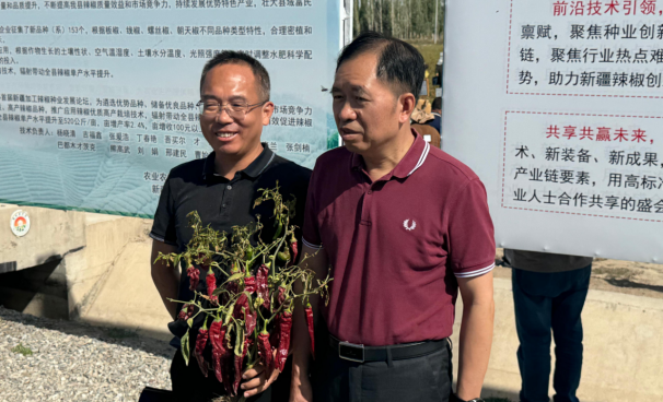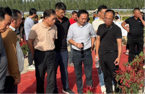 天山突兀拔地起,雪光烛天天尺咫2024年9月19日,带着丰收的喜悦,湖南兴蔬种业辣椒品种新疆现场观摩会隆重召开。本次观摩会由湖南兴蔬种业有限公司与湖南省蔬菜研究所联合主办。中国工程院院士、国家特色蔬菜产业技术体系首席科学家、湖南农业大学校长邹学校,湖南省蔬菜产业技术体系首席科学家戴雄泽,国家特色蔬菜产业体系岗位科学家刘峰,新疆生产建设兵团第二师22团党委书记、政委张鑫,湖南省蔬菜研究所所长李雪峰,湖南兴蔬种业有限公司董事长邹家华莅临现场,共同见证辣椒产业的新篇章。