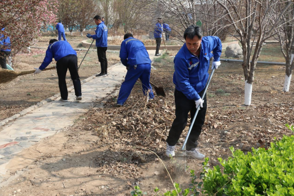 阳春三月,春暖花开,绿草返青,涿州公司保洁绿化人员的工作应接不暇。办公楼东侧两个花园里冬天遗留的干树枝和白色垃圾的存在,影响了此处美景。上午9点进行主题党日理论学习之后,支部书记李俊同志身先士卒,在岗党员、干部、入党积极分子紧随其后,铁锨、扫帚、耙子、小推车等劳动工具齐上阵,你看,有的在捡树枝,有的在捡垃圾,有的清扫枯叶,有的在平整土地,有的在装车.....,场面好不热闹。经过近2个小时的劳动,两个花园的环境改善了很多,同志们虽然满身灰尘,但是看着劳动成果,心中充满了开心和喜悦。